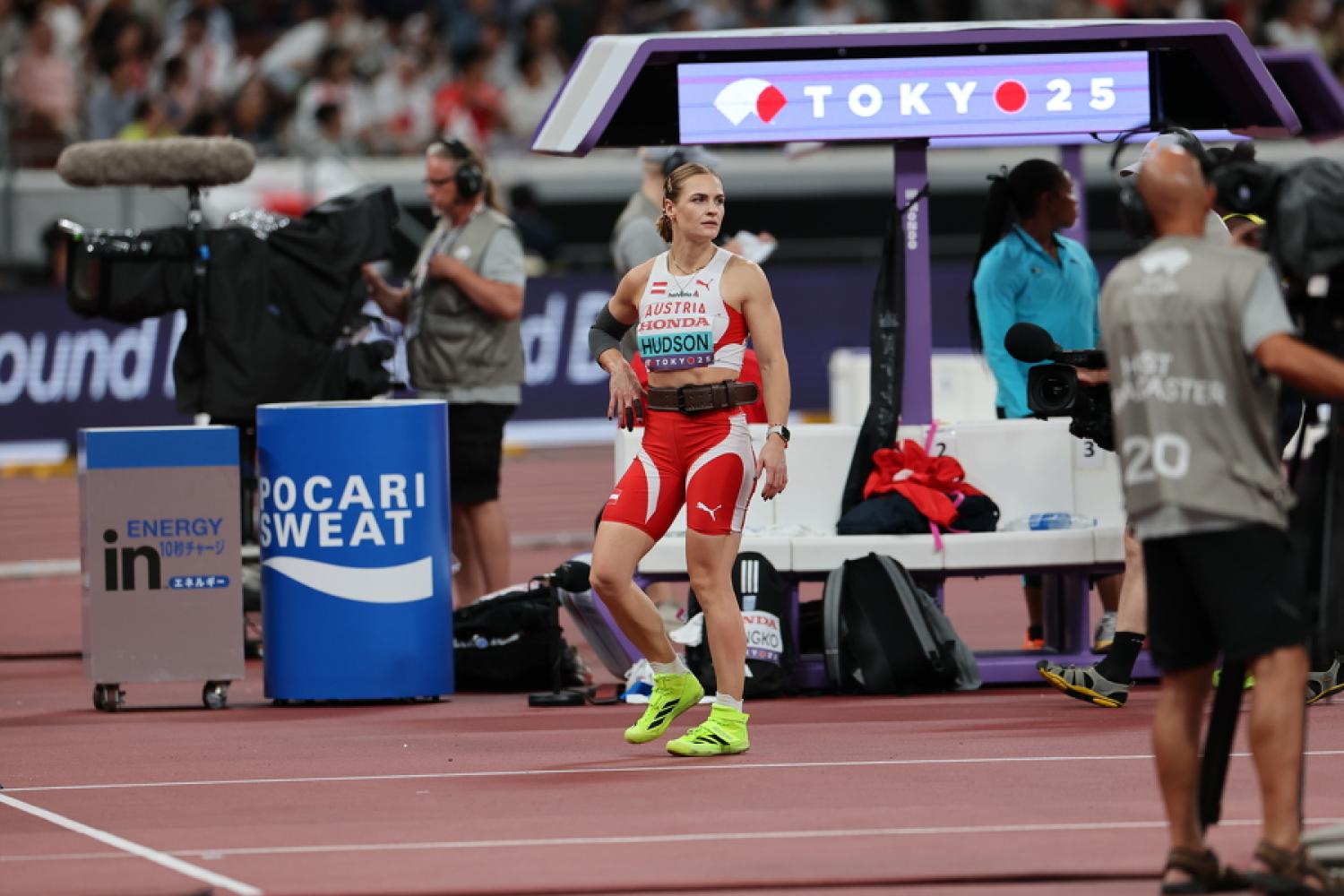 Speerwurf-Europameisterin Victoria Hudson belegte Samstagabend im WM-Finale im vollbesetzten Olympiastadion von Tokio mit 59,52 m den zehnten Rang, musste nach vier Durchgängen und nur einer gültigen Weite den Wettkampf vorzeitig beenden. Ganze vier Zentimeter fehlten, um noch einen zusätzlichen Versuch in Anspruch nehmen zu dürfen. "Ich wusste, dass heute unter diesen Bedingungen viel möglich ist. Es ist eine Ehre, als Welt-Jahresbeste hier zu stehen. Der erste Versuch ging leider völlig daneben, der zweite war auch nicht wirklich gut. Ab dann musste ich riskieren und das kann auch nach hinten losgehen. Beim letzten Versuch habe ich es noch einmal mit voller Kraft probiert, aber da hat die Hüfte nicht gehalten, bin ich weggeknickt. Wirklich technisch erklären kann ich es im Moment noch nicht. Aber um um die Medaillen mitkämpfen zu können, hätte ich eine Weite von über 63 m gebraucht. Ich bin maßlos enttäuscht", kommentierte die 29-jährige Niederösterreicherin ihr vorzeitiges Ausscheiden. Nachsatz: "In der Qualifikation habe ich Nervenstärke bewiesen, das kann ich aus Tokio mitnehmen. Aber heute wollte es leider nicht sein."